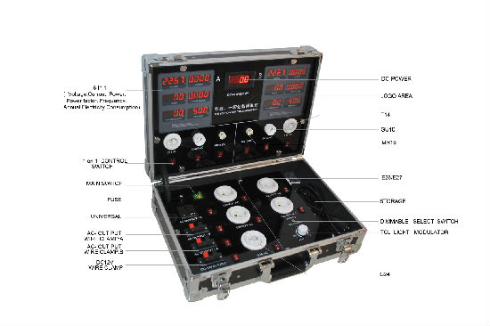 2. DC part of the parameter display: DC lamp holder (- DC) interface, data display on the DC POWER , such as MR16. Dc voltage in the box internal is transformed into 12 v output to light sit interface.