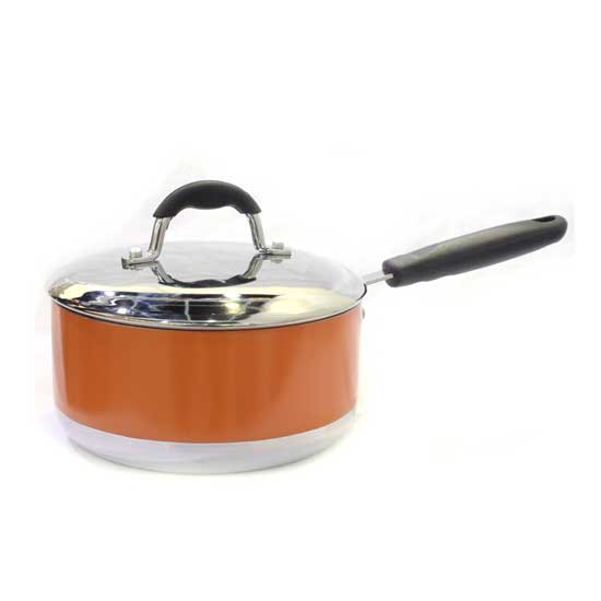 This round saucepan boasts a sharp orange exterior with a half-polished finish for an exquisite accent. The tight-fitting lid is skillfully designed with a padded handle to prevent your hand from burning. This aluminum saucepan makes a perfect integration of style and function.