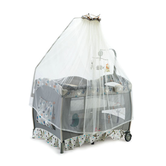 This baby playpen can be easily assembled. It comes with a mosquito net and mobile toy for excellent functionality. Solidly built with an aluminum frame, this playpen promises a long service life.