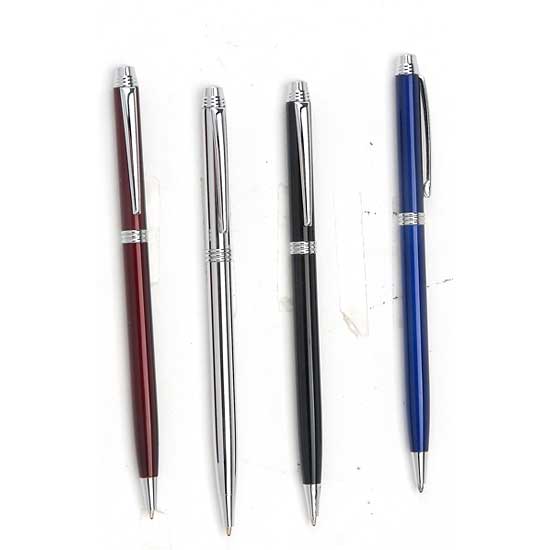The metal ball pen flaunts a slim design with a sturdy construction. It is delicately made with a smooth and refined finish. This ball pen serves as an excellent desktop tool.
