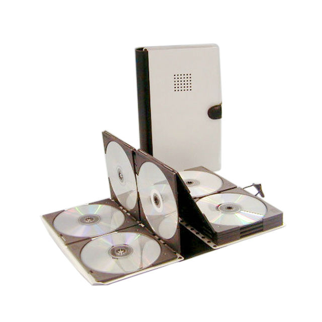● Black linked foldable plastic cabinets securely house 20 CDs