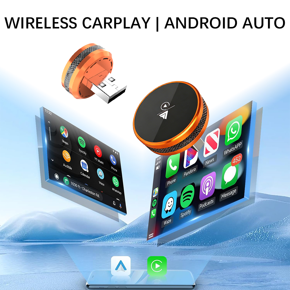 1.Dual interface(USB+TYPE-C) 2 in 1 Wireless Carplay Android Auto Box