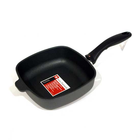 Showcased here is an aluminum fry pan with an easy-to-clean and non-stick surface. The square-shape design is the ideal size for frying chicken. This sturdy and robust fry pan is the essential cookware for every kitchen.