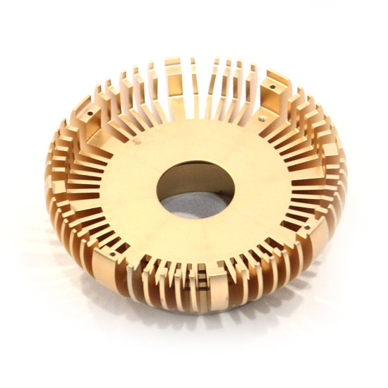 The heat sink features an aluminum casing with a blue anodized surface. The heat sink transfers thermal energy from a higher temperature to a lower temperature fluid medium. The heat sink effectively dissipates heat to ensure operational safety.