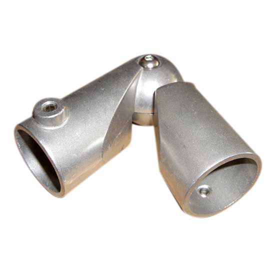 Showcased is an aluminum hinge joint with a conventional design for easy installation. The die-casting finish reinforces sturdiness and presents a scratch-proof profile. This die-cast aluminum hinge is a durable material piece for building racks and hangers.