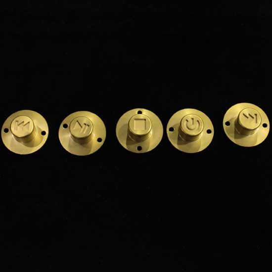 The gold-plated aluminum knobs feature embossed symbols for different functions. They are durable in construction with excellent impact resistance. These metal knobs are great for audio-visual and hi-fi equipment.