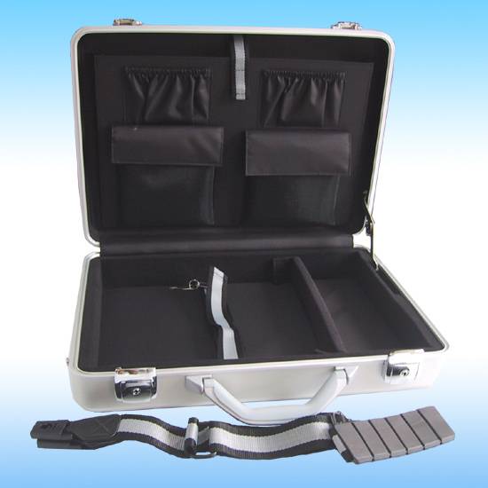 This laptop case is made of aluminum and is hard enough to protect the laptop inside from scratches and vibration. It has a black padded interior with several partitions for storing other computer peripherals. It also has 2 locks to keep the notebook safe in the case.