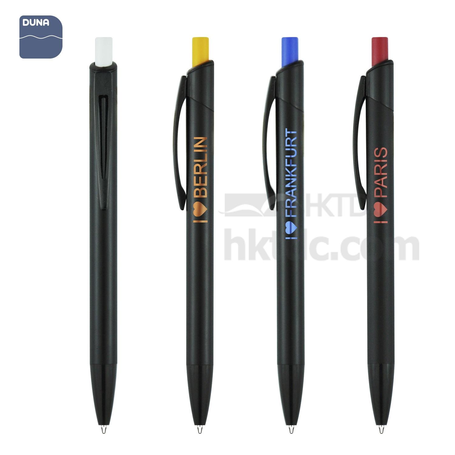 It is a metal ball pen. Barrel Aluminum & black color, cap colorful.  Other accessories plastic material. Barrel can laser colorful Logo.