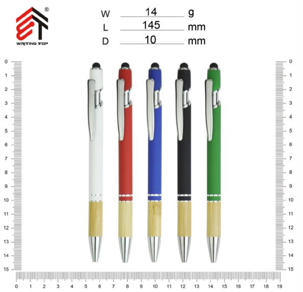 It is a metal ball pen. Barrel Aluminum &Colorful sylus. Barrel can laser colorful Logo.