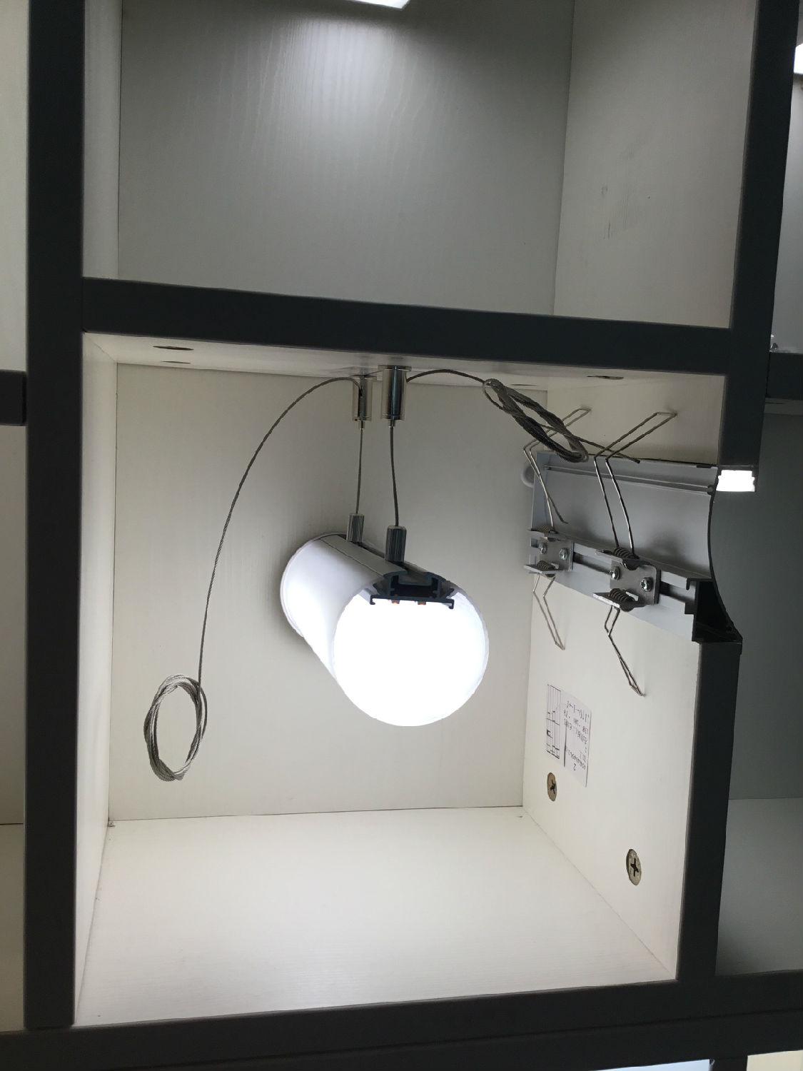 E.g. PC cover, metal end cap, plastic end cap/clip, suspended wire.