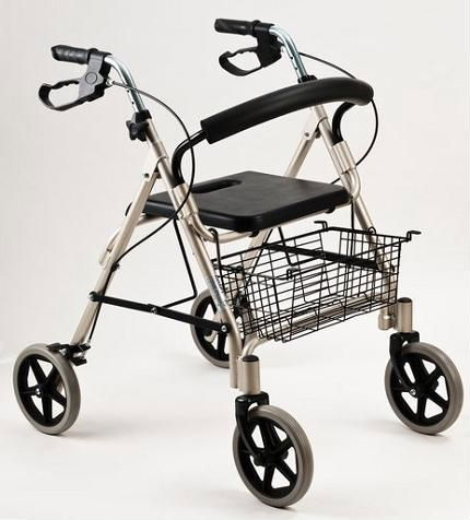 Enhanced your mobility with this practical rollator. Constructed with high quality aluminum, you can enjoy its lightweight design for a handy use. A PU seat is provided to perform meticulous design while ergonomic handles are configured for an easy and comfy grip. The rollator integrates lock mechanism and release hand brake function to promise absolute safety.