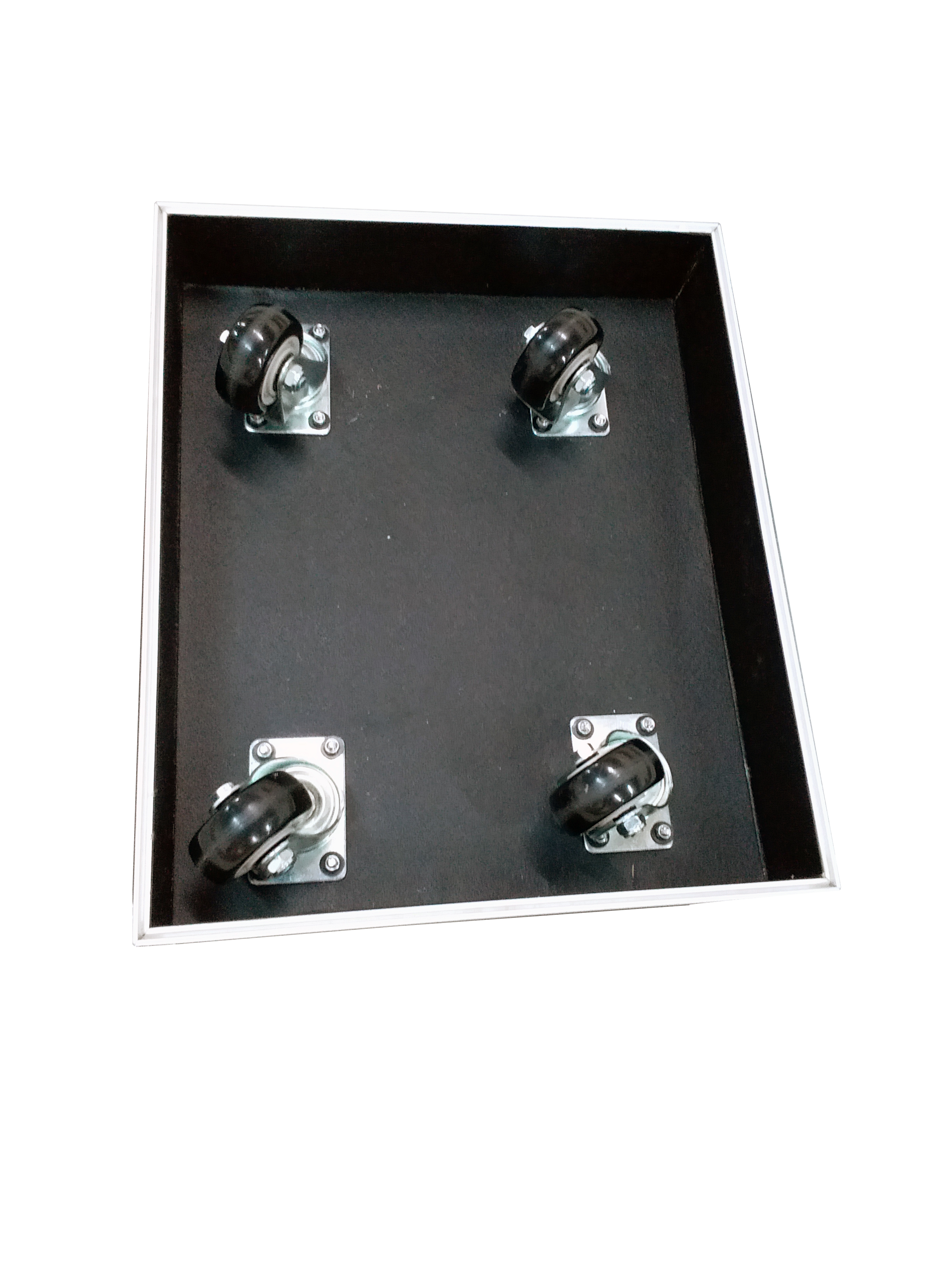 This aluminum roller trunk has a rectangular compartment lined with wave foam and has an aluminum tray on top. It has a hinged lid for covering and has reinforced steel ball corners for added durability. The aluminum roller trunk has 4 castors for smooth mobility and can provide excellent protection to the items stored inside.