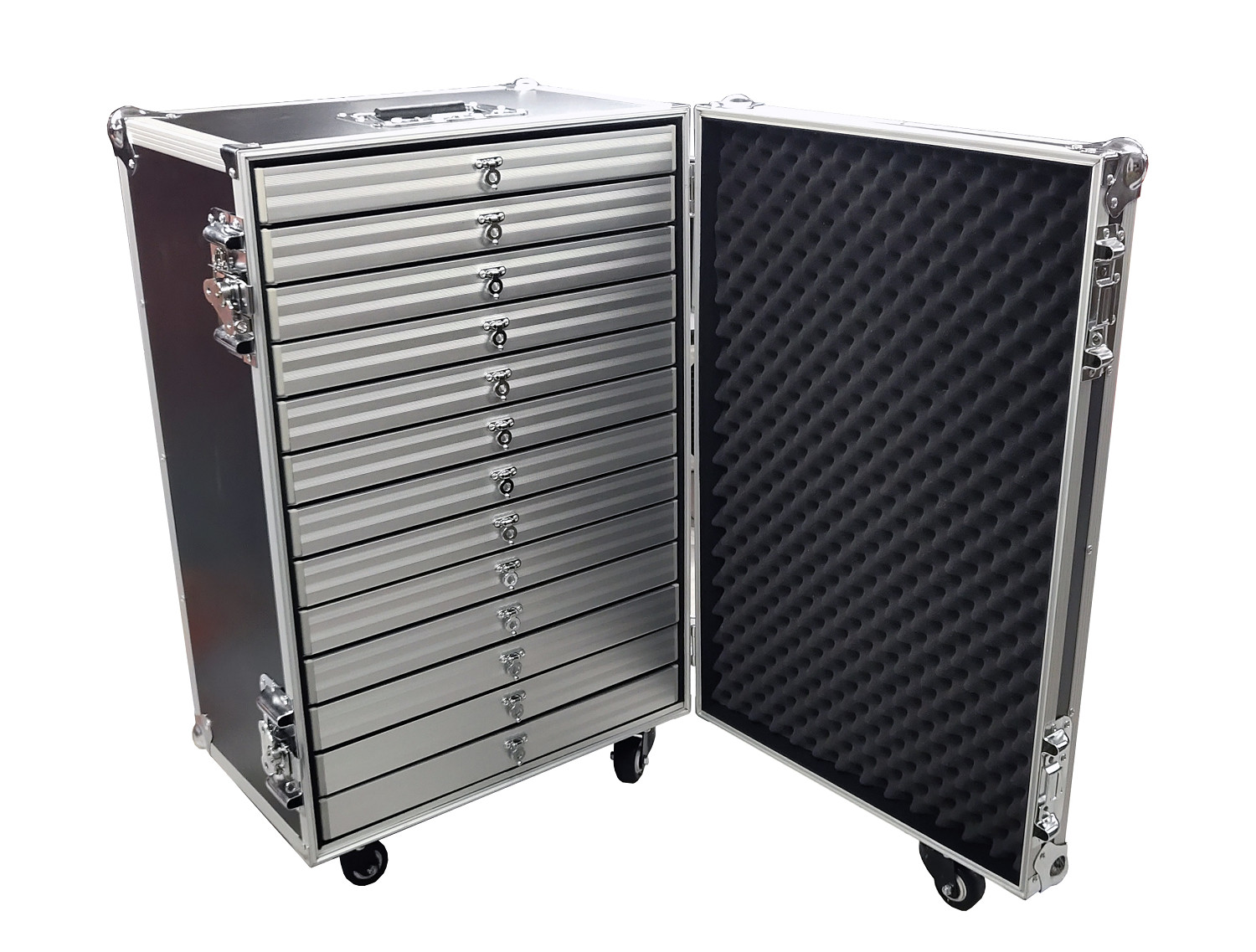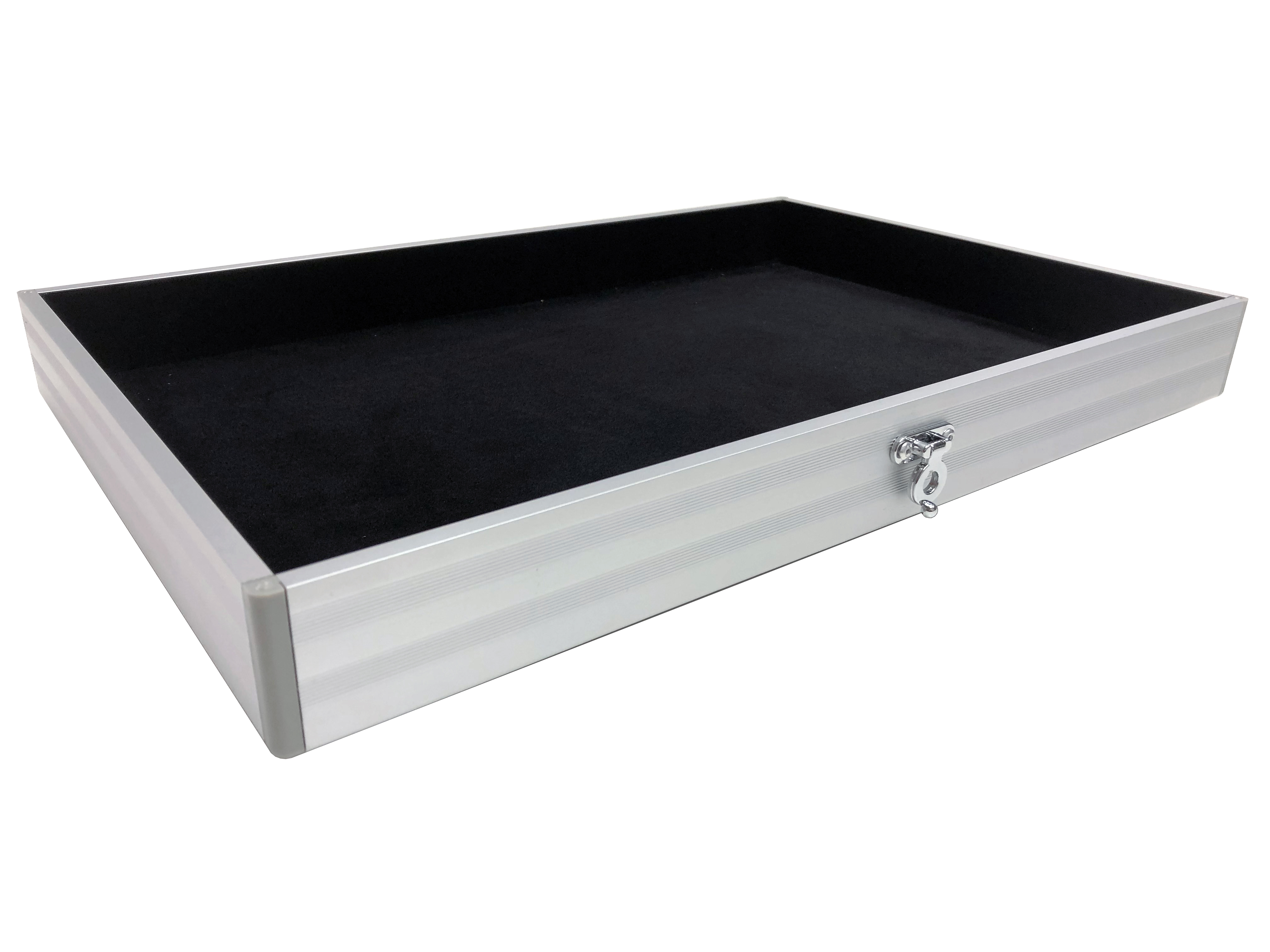 - Includes thirteen pieces of empty aluminum pull out trays with 7 mm rim.