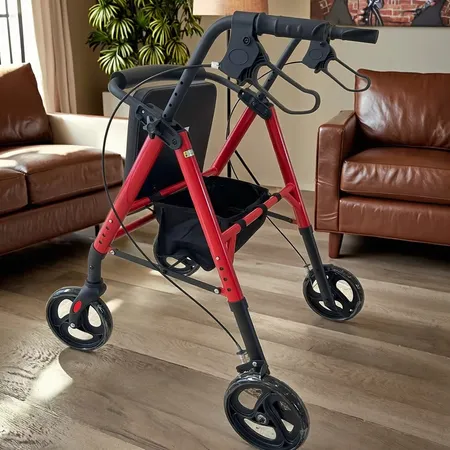 Light weight, aluminum strong frame with painting, anti-aging *padded seat and comes with a larger carry pouch under seat