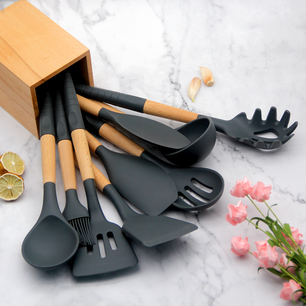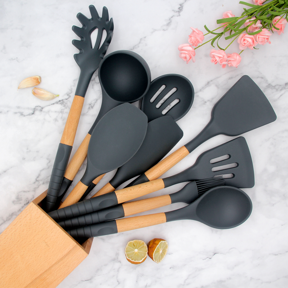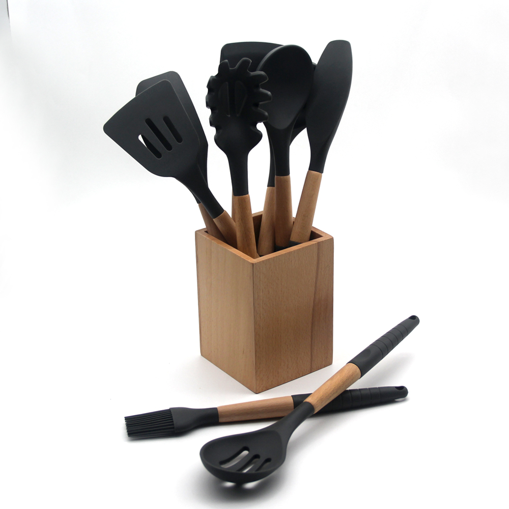 | Item name | Amazon Hot Sale Silicone Utensil Set With Holder cozinha 10pcs Wooden Handle Silicone Cooking Tools Kitchen Accessories gadgets |