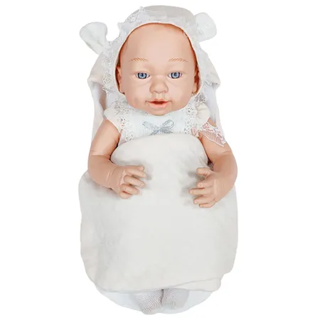 Soft tender face with realistic eyes and irresistibly cute toes, wrinkled little fingers and toes, hand painted details and hand applied eyelashes look like a real baby.