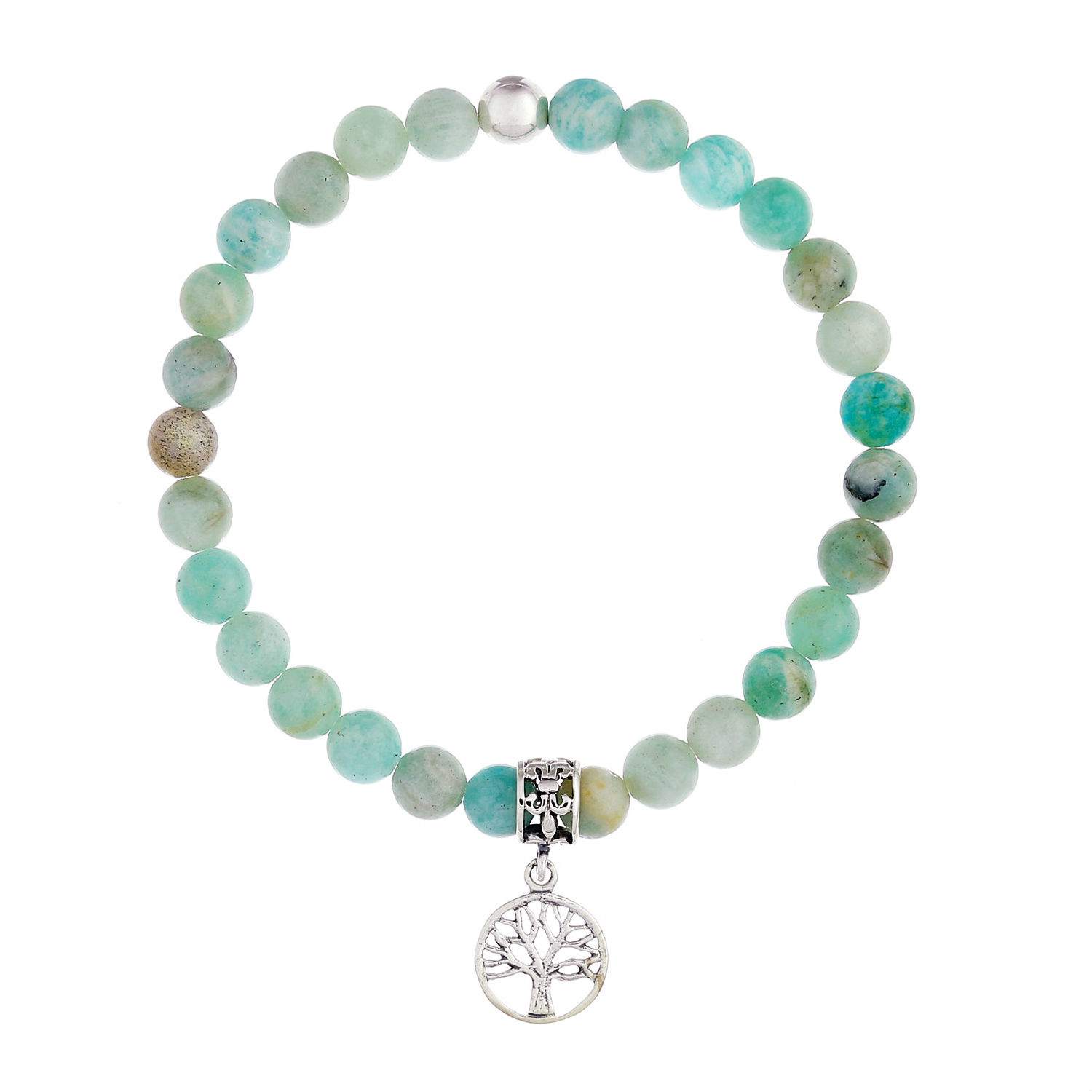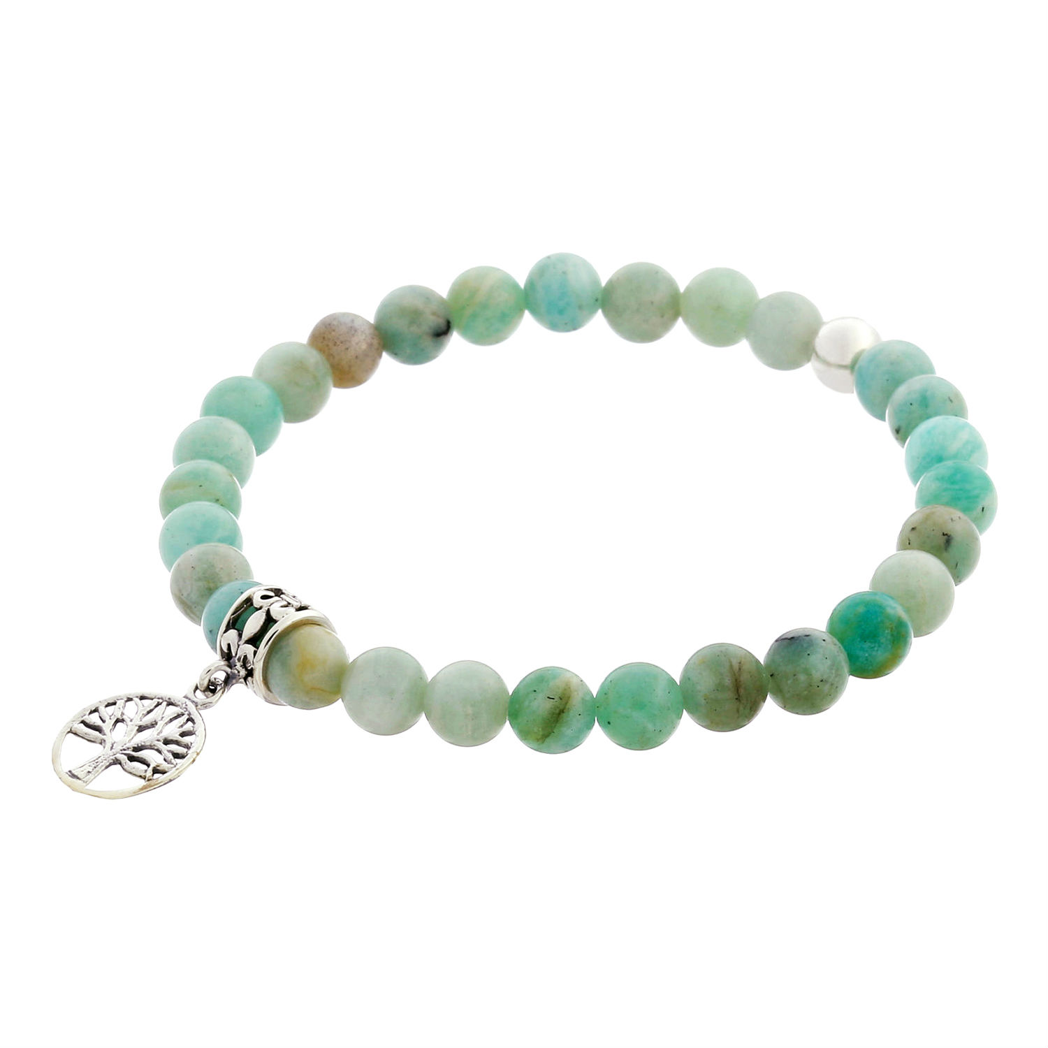 Amazonite Stretch Bracelet Silver Tree of Life Charm
