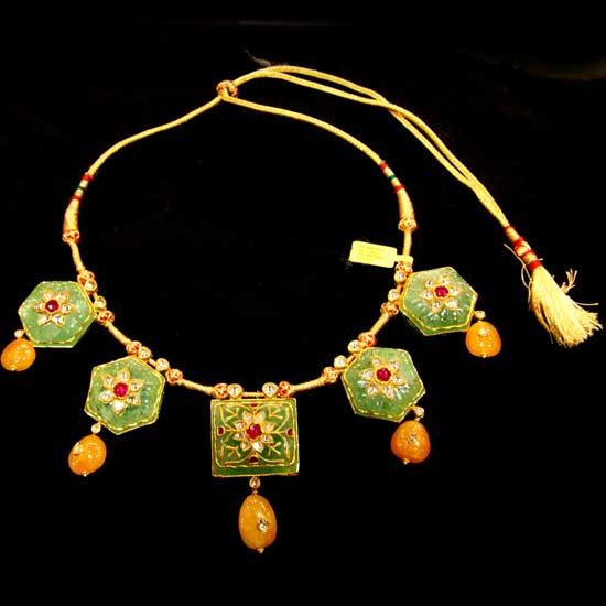This amber bracelet flaunts five artistic pendants. They feature hexagonal and square stones with high-value yellow sapphires in smooth shapes. They feature beautiful floral decorations for added style. This unique bracelet makes a perfect jewelry item for ladies.