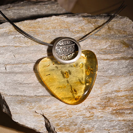 The "Tear" amber necklace features a heart-shaped Baltic amber. The round 925 silver embellishment comes with "the Tear" patterns for a unique. It brings out your unique personality without sacrificing your beauty.