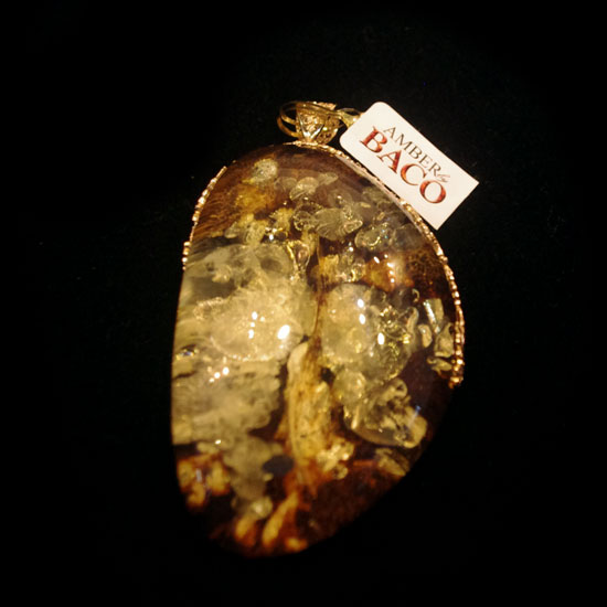 This amber pendant features an irregular shape for a unique appearance. The high quality amber offers superior light performance and hardness. It is a perfect addition to your jewelry collection.