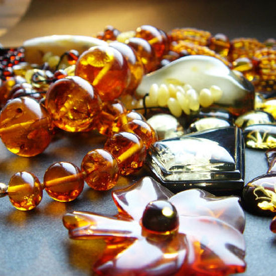 Amber necklaces, bracelets, silver jewelry, amber specimens are also available.