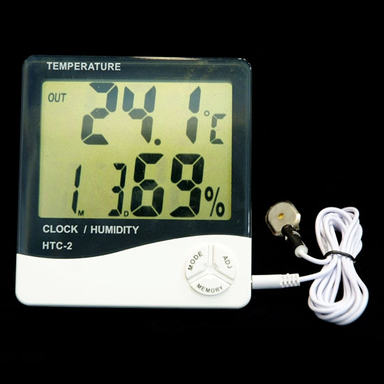 This ambient temperature and humidity meter displays indoor and outdoor temperature and indoor humidity. It can automatically exchange in 5 seconds between indoor and outdoor temperature. The versatile meter also comes with everyday alarm and calendar functions.