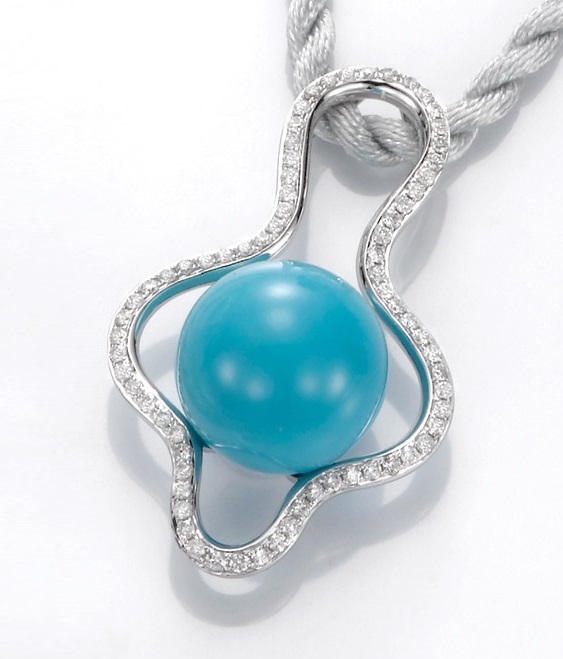 American Arizona Sleeping Beauty Turquoise Gold Pendant with Diamond