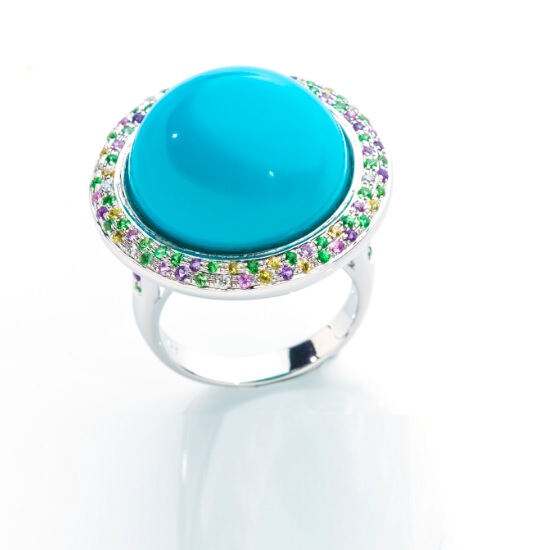 American Arizona Sleeping Beauty Turquoise Gold Ring with Diamond and Color Gemstone