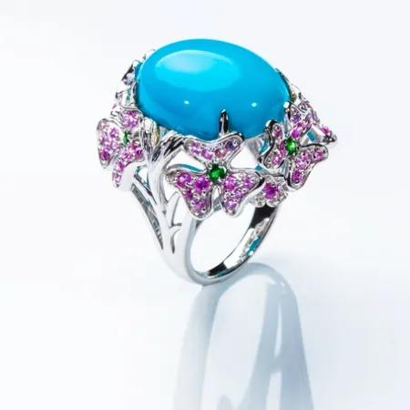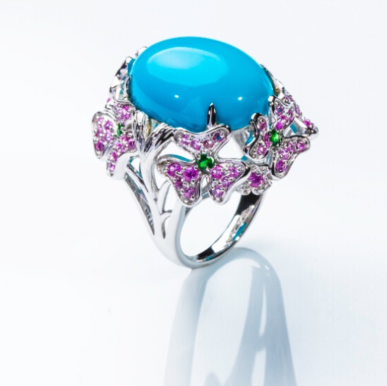 American Arizona Sleeping Beauty Turquoise Gold Ring with Diamond and Color Gemstone