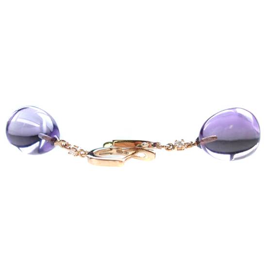 This is a pair of amethyst earrings. The earrings features a teardrop shape cabochon amethyst stone. The stone is held on pink gold which matches with the color of amethyst. They are suitable for evening, night and formal functions.
