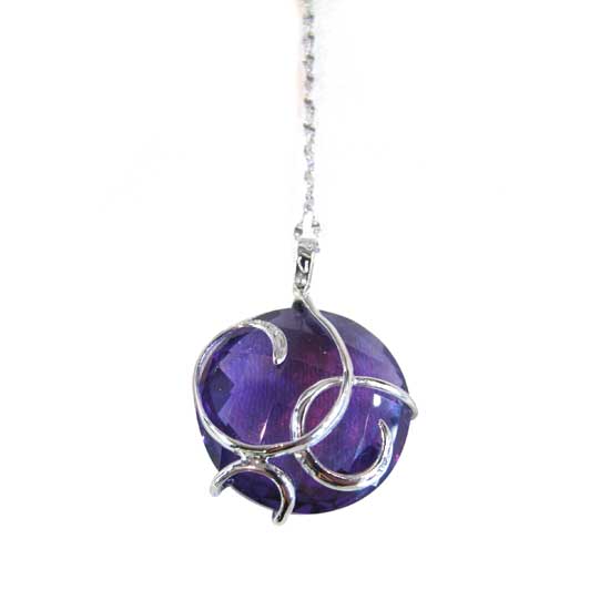 This trendy necklace appeals to people with its exquisite and trendy design. It comes with a round purple amethyst stone covered by silvery curved lines for a sophisticated and unique look. This valuable necklace surely is a great accessory for your chic outfit.