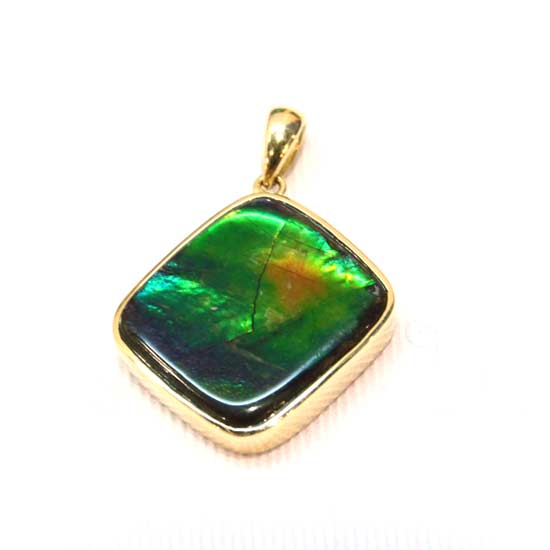 The ammolite pendant comes in a delicate square shape for a touch of uniqueness. The 18K gold construction promises lasting shine. This glamorous ammolite pendant makes a glittering addition to your jewelry collection.