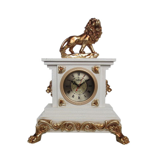 This high-quality analog clock comes with a stylish and fashionable design. The round dial is crafted with three hands and 12 Roman numeral hour markers for easy time reading. This well-designed clock features a golden lion ornament on the top for an eye-catching look.