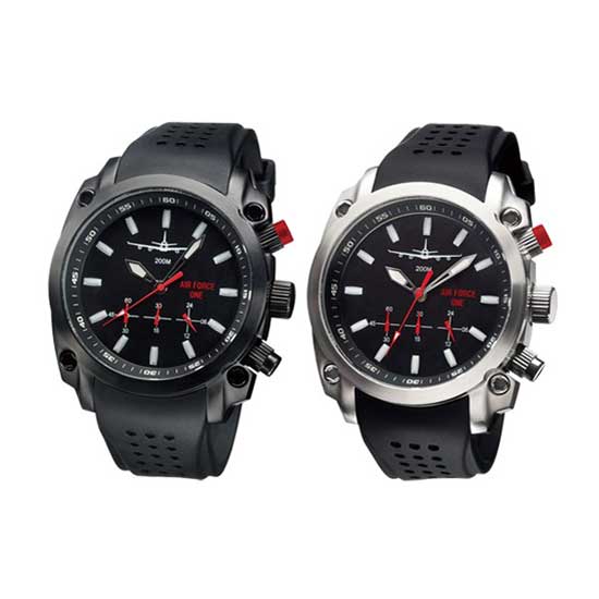 This analog quartz watch features a rigid stainless steel case in a black or silver finish. The black sunray dial is designed with luminous watch hands and three small subdials for added functionality. The stylish and practical watch is suitable for everyday wear.