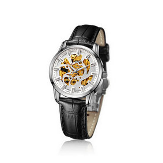 The unique-looking watch is designed with stainless steel and a black leather strap. Designed with an eye-catching background on the watch face, the product boasts an outstanding appearance, which allows it to pop among other ordinary watches. With three watch hands, the watch brings you distinct time display. This one-on-a-kind watch will spice up your timepiece collection.