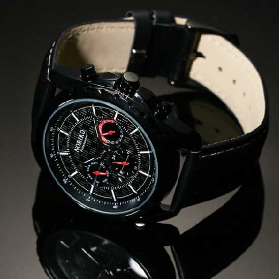 This analog watch in timeless black boasts multi-functions to bring convenience to your life. The case and the back are constructed from stainless steel for sturdiness. The high quality strap promises coziness for long time wear.