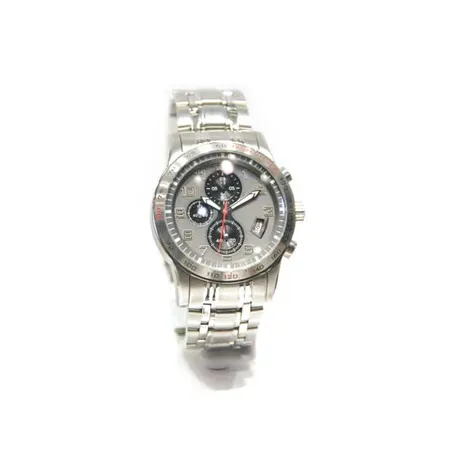 Displayed is a men's analog watch that comes with a large round dial with Arabic hour markers. Housing a chronograph movement, this wrist watch is accurate and has a long service time. With useful subdials and a date wheel, this analog watch is also waterproof.