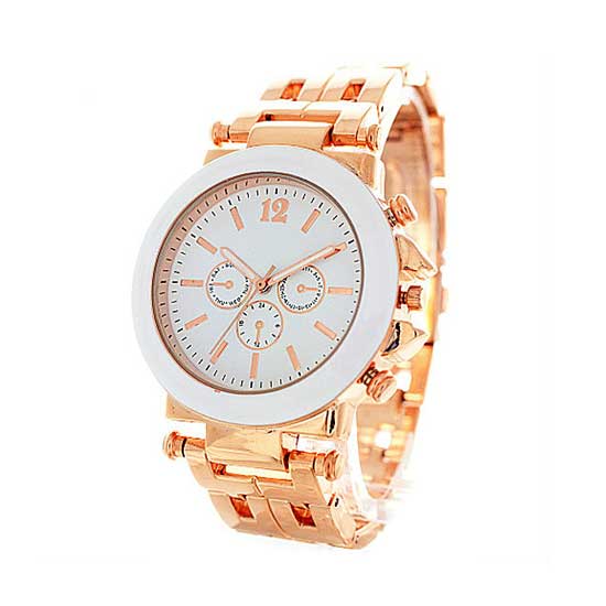 This is a ladies' analog watch that comes in a fashionable design. Featuring three sub-dials, this watch is useful and easy to read. The case and band are both made of alloy for durability.