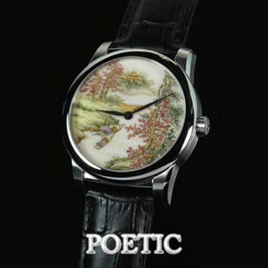 This is an analog watch that is accented with exquisite Chinese painting details on the dial face. It runs on a high-precision movement for reliable timekeeping performance. The ergonomic strap fits comfortably on your wrist.