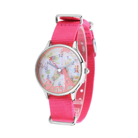 This analog watch comes with a stylish and fashionable design. The two-layer dial is crafted with colorful patterns for an eye-catching look. This specially-designed watch is finished with a nylon strap for a long service life.