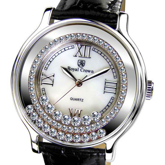 - Silver-tone bezel with sparkling stone detailing throughout.