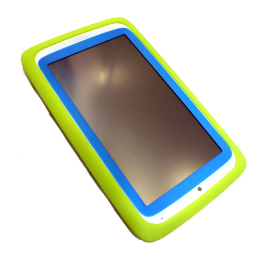 The outlined tablet PC is specially designed for kids to use. The eye-catching blue and green toned casing, flaunting a delightful accent. This displayed tablet PC runs on the Android 4.0 operating system for added convenience.