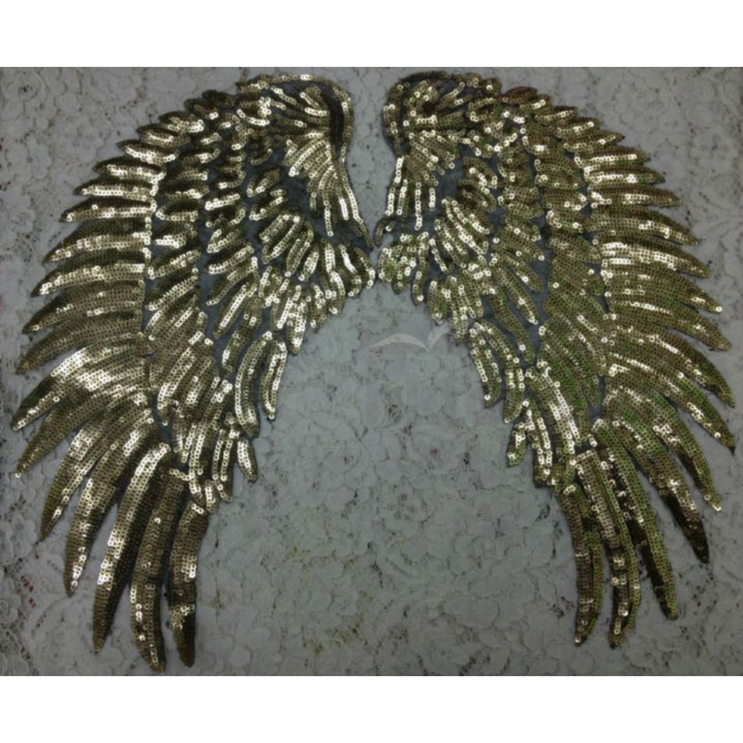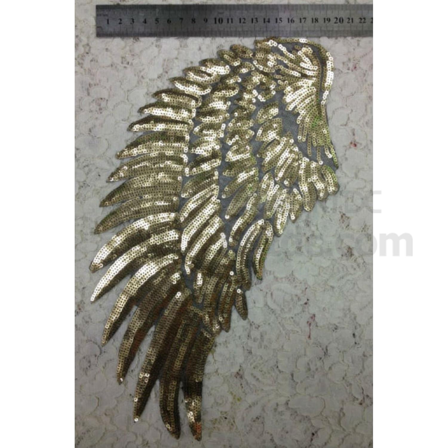 Angel Wings with Embroidered with Golden Sequins, Beads, Pearls and Diamond for Dress