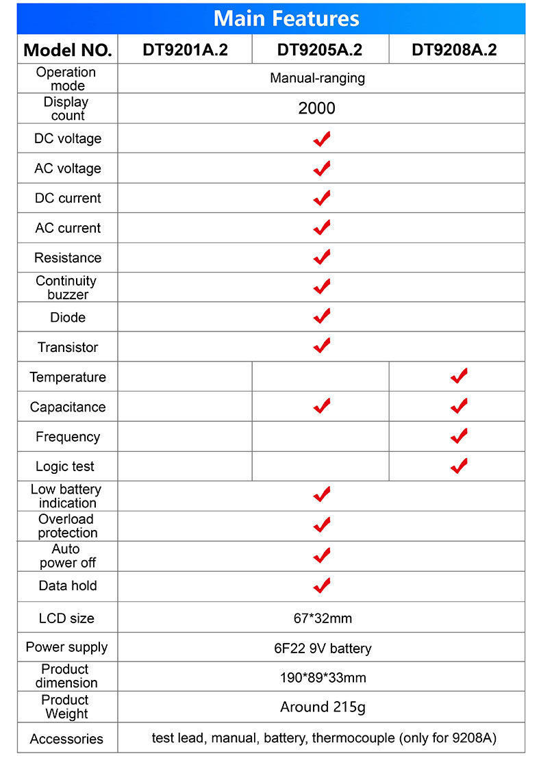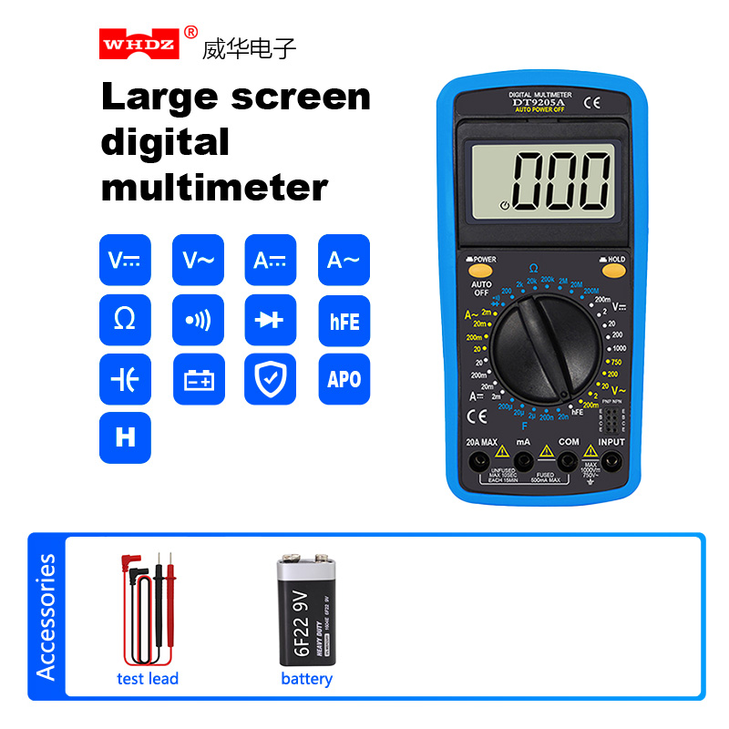 Angle Adjustable Digital Multimeter DT9205A with Buzzer Capacitance test