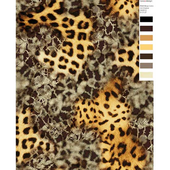 This eye-catching fabric is highlighted with sophisticated animal prints. The delicate trims lend an extra touch to the look. This high quality fabric is widely used in the fashion industry.