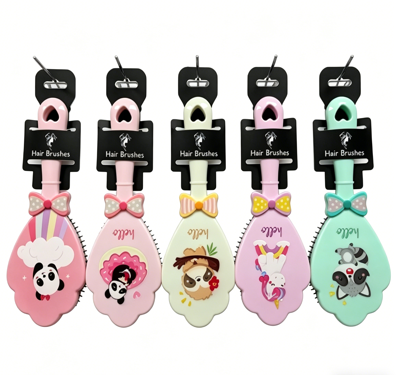 Plastic hair brush with rubber cushion+nylon pins,back with animal printing