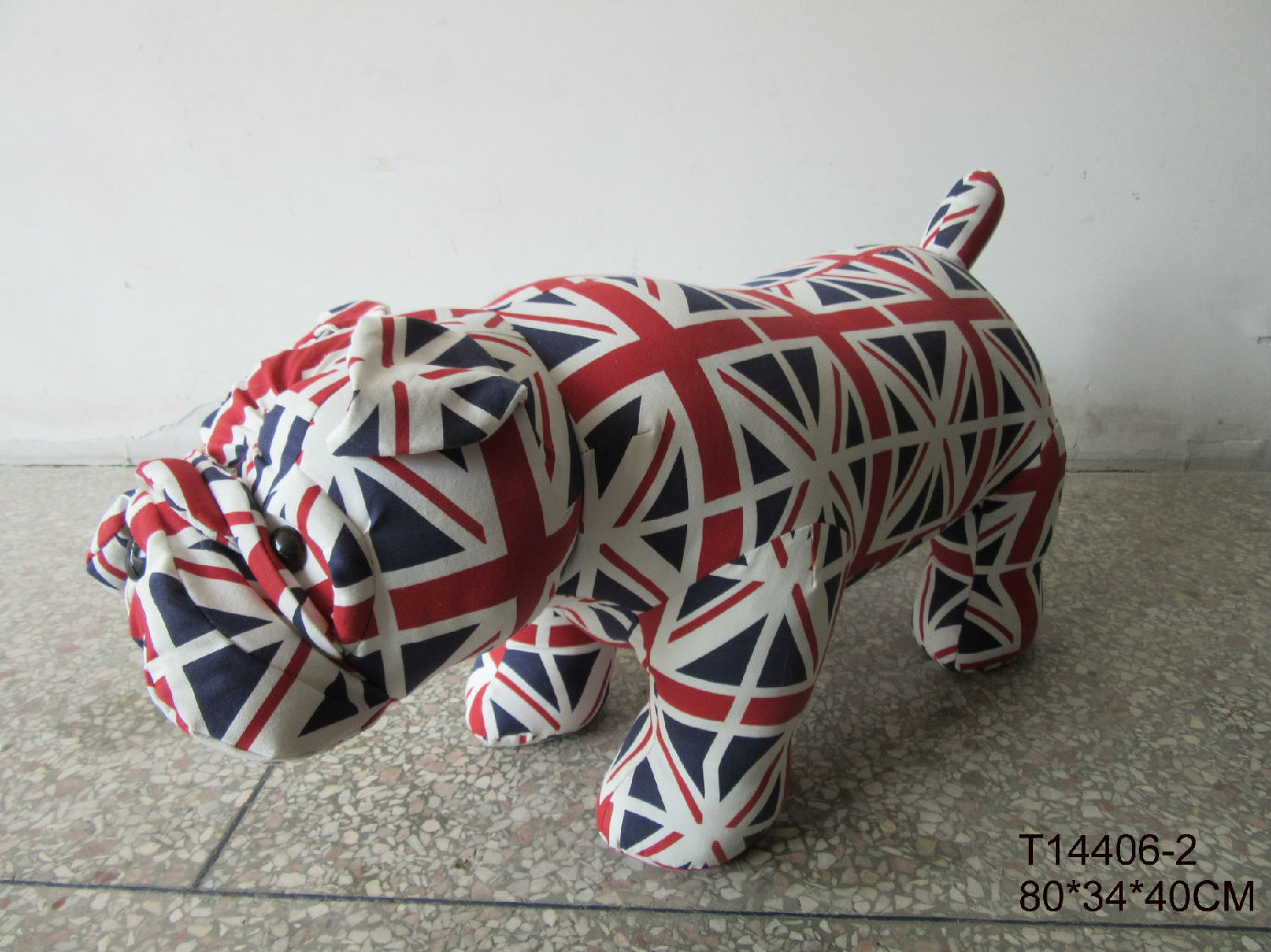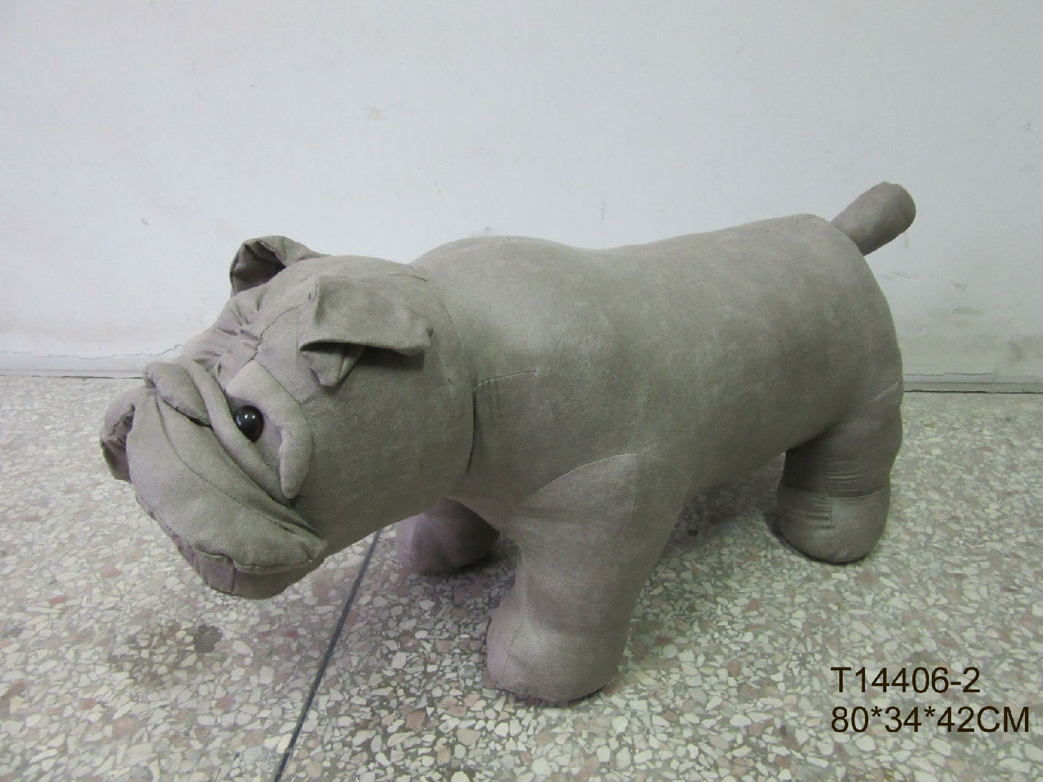 This is a stool with a lifelike dog appearance. It is made with excellent workmanship and attention to detail. This item will add a touch of cuteness to this design.
