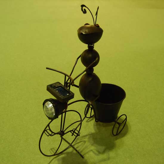 This flower pot flaunts a novel appearance of an ant riding a bicycle. The front of the bicycle is designed with a solar lamp. Keep your plant in this ingenious flower pot.