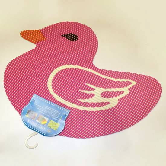 Featured is a bathroom is a universal anti-slip mat in a duck shape. The anti-slip and shock absorbing features help ensure safety in the bathroom. This lovely and cutely designed mat not only adds decorative elements to your home, but also is highly functional.
