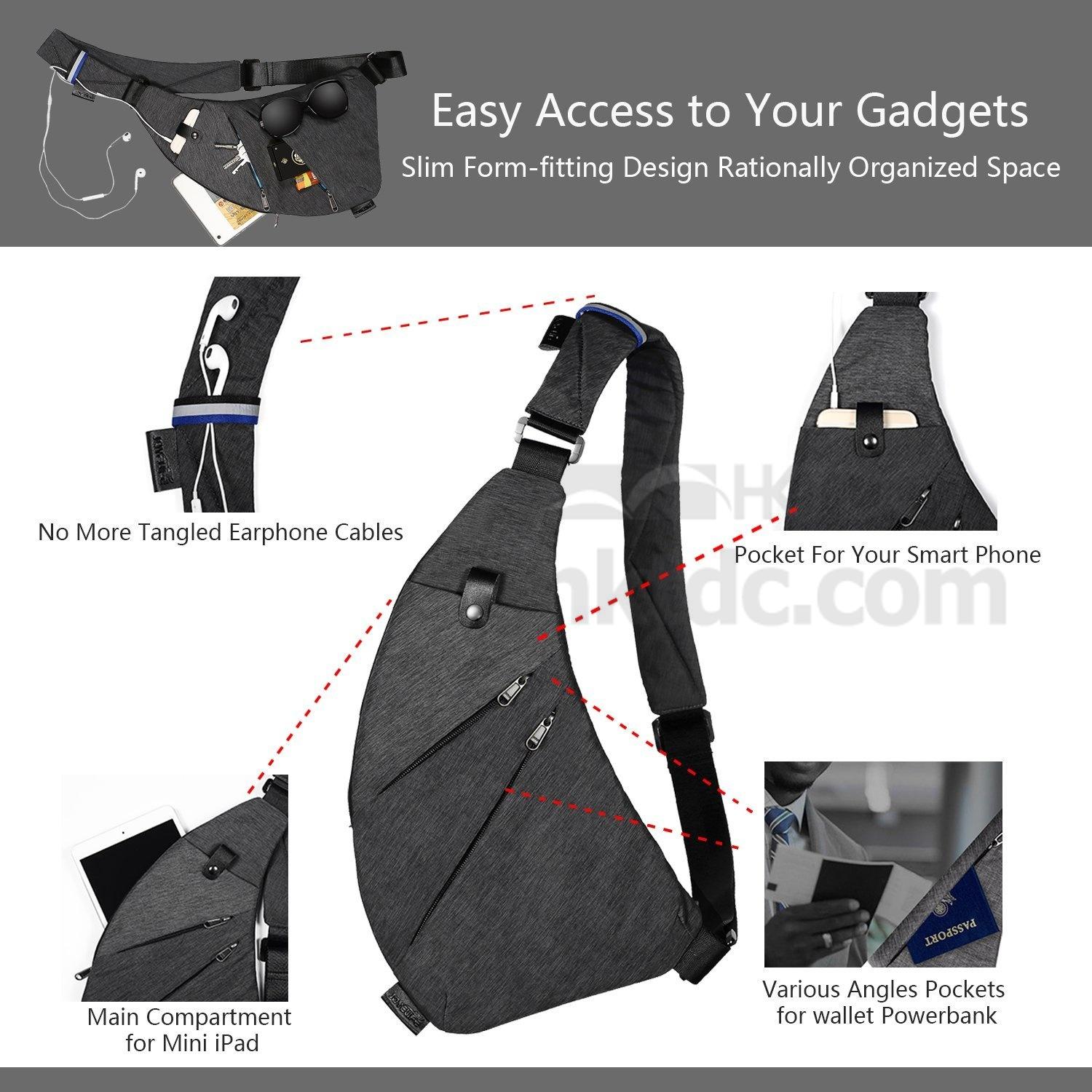 Keep your valuables safe on-the-move with this anti-theft sling bag. Fitting seamlessly under your tee shirt, the slim slang bag is divided into five spacious compartments to keep all your passport, wallet and smartphone well-organized inside the splash-proof construction. Partnered with a RFID blocking pocket, it helps to prevent you from falling prey to identity thefts.